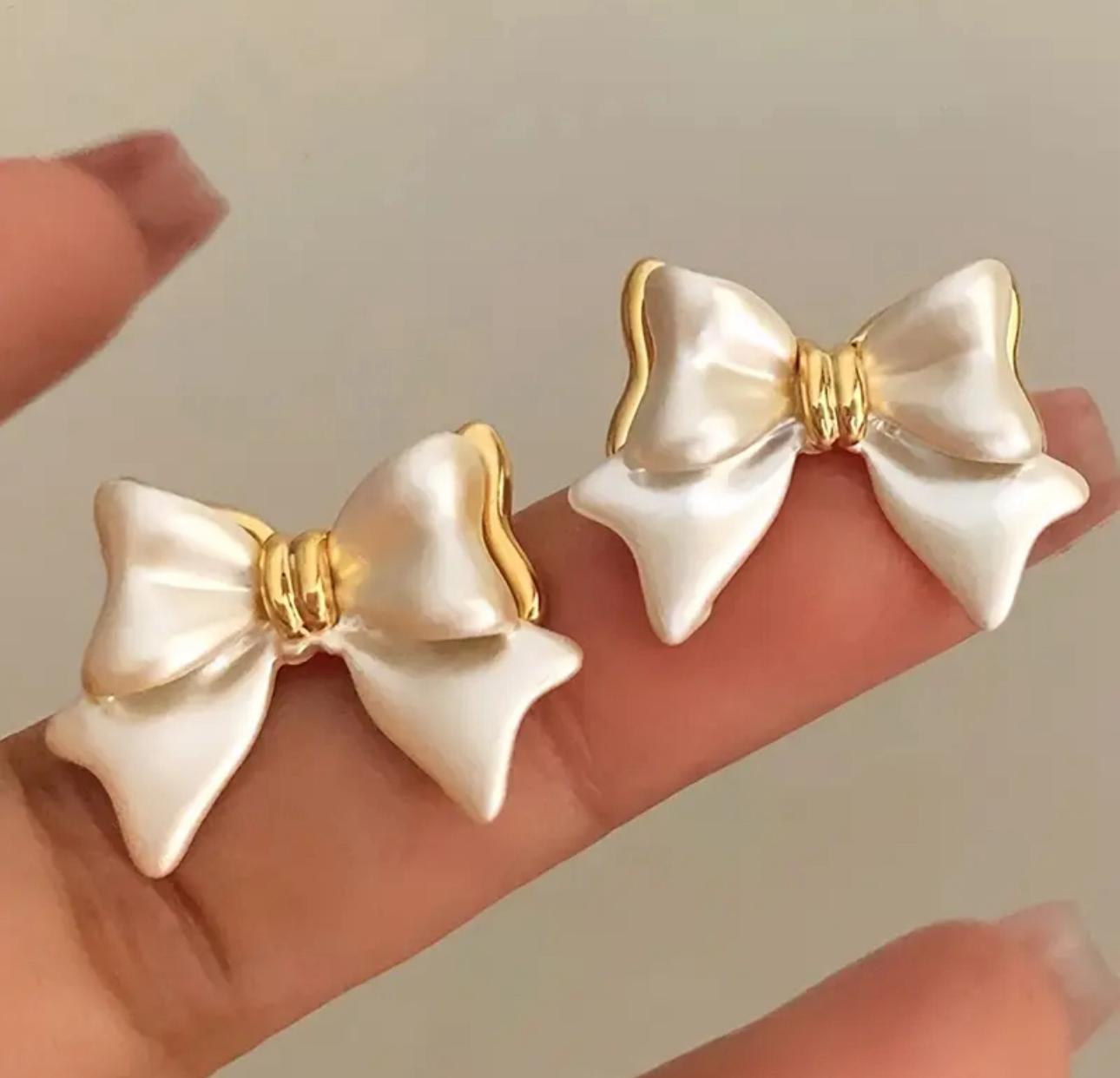 Cute Pearl-White Bow Earrings