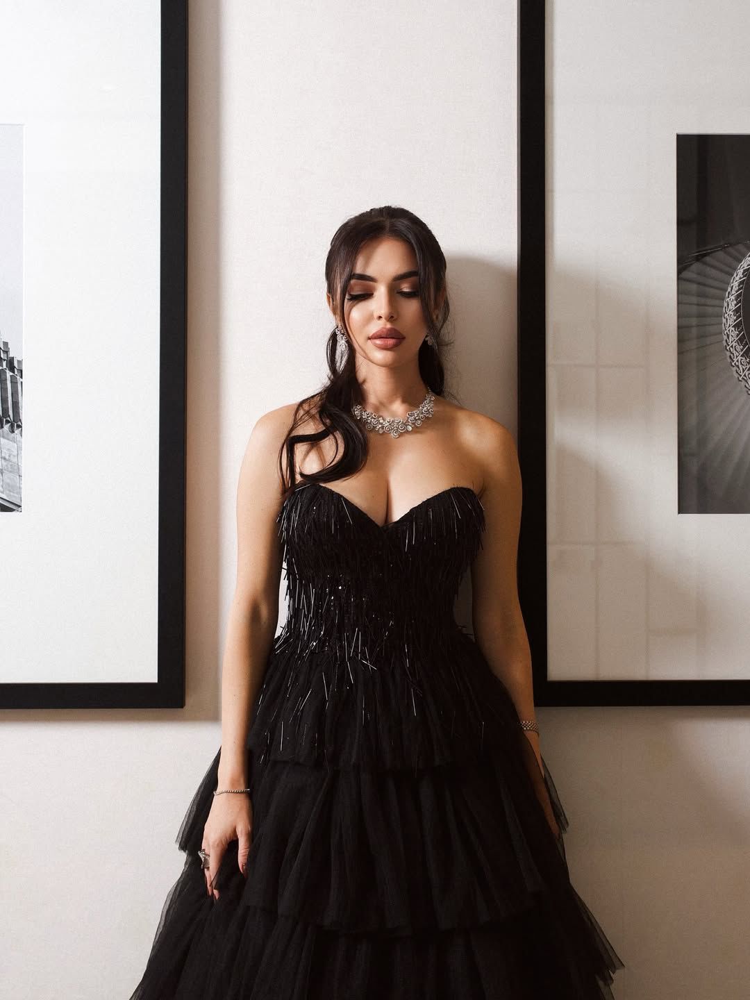 Black Tulle Evening Gown