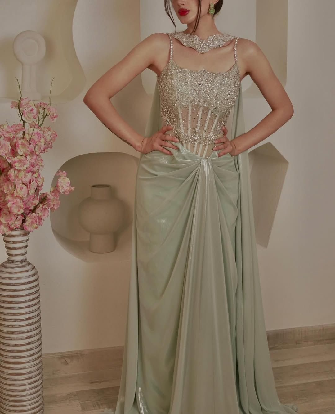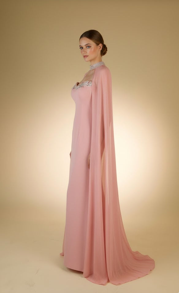 Blush Pink Embellished Gown with Cape
