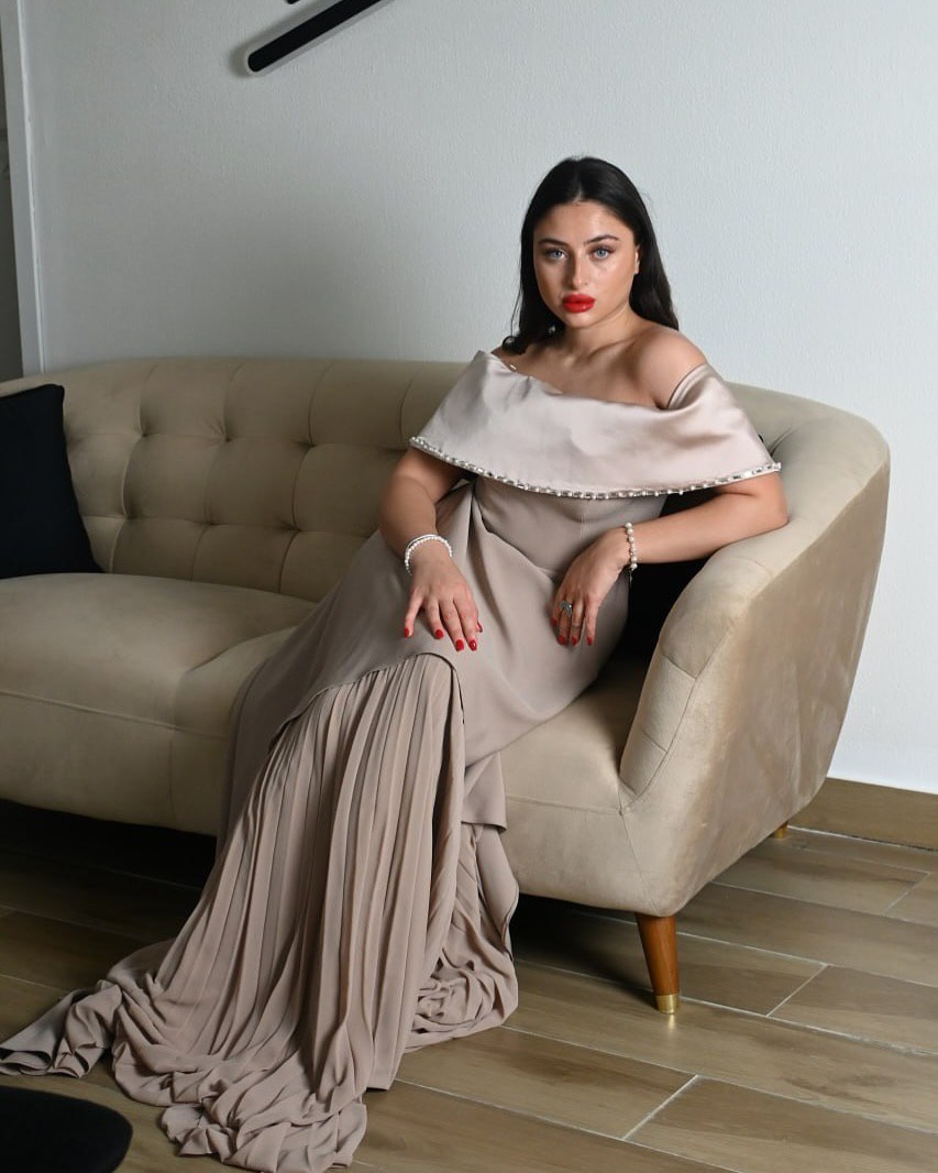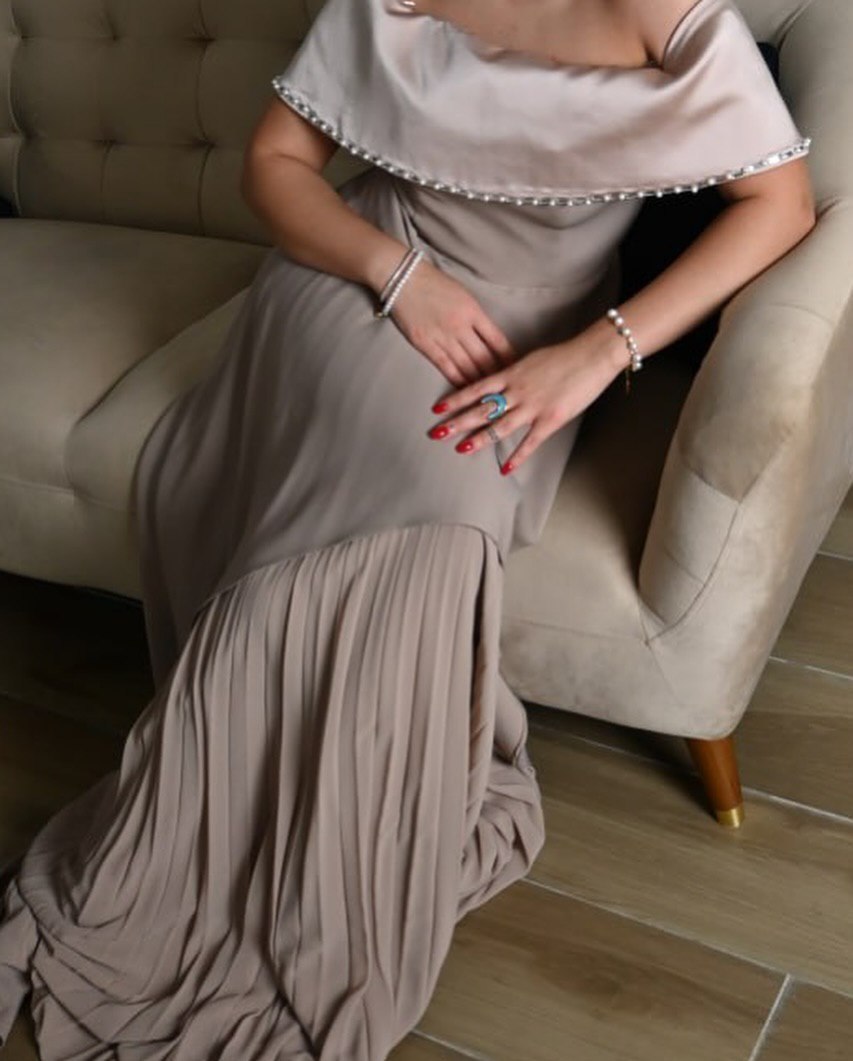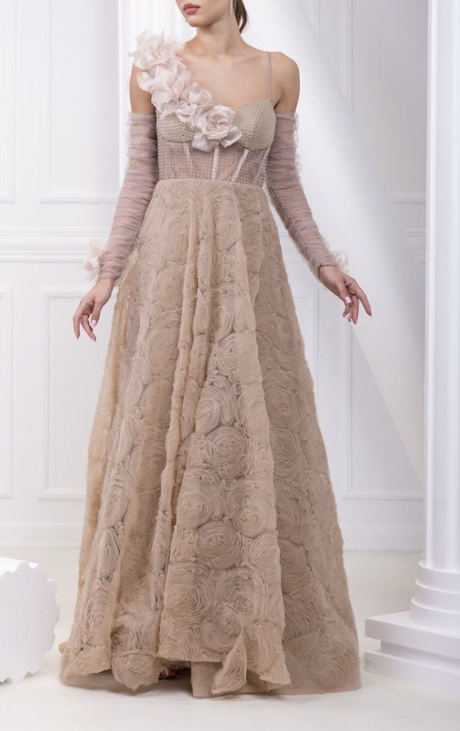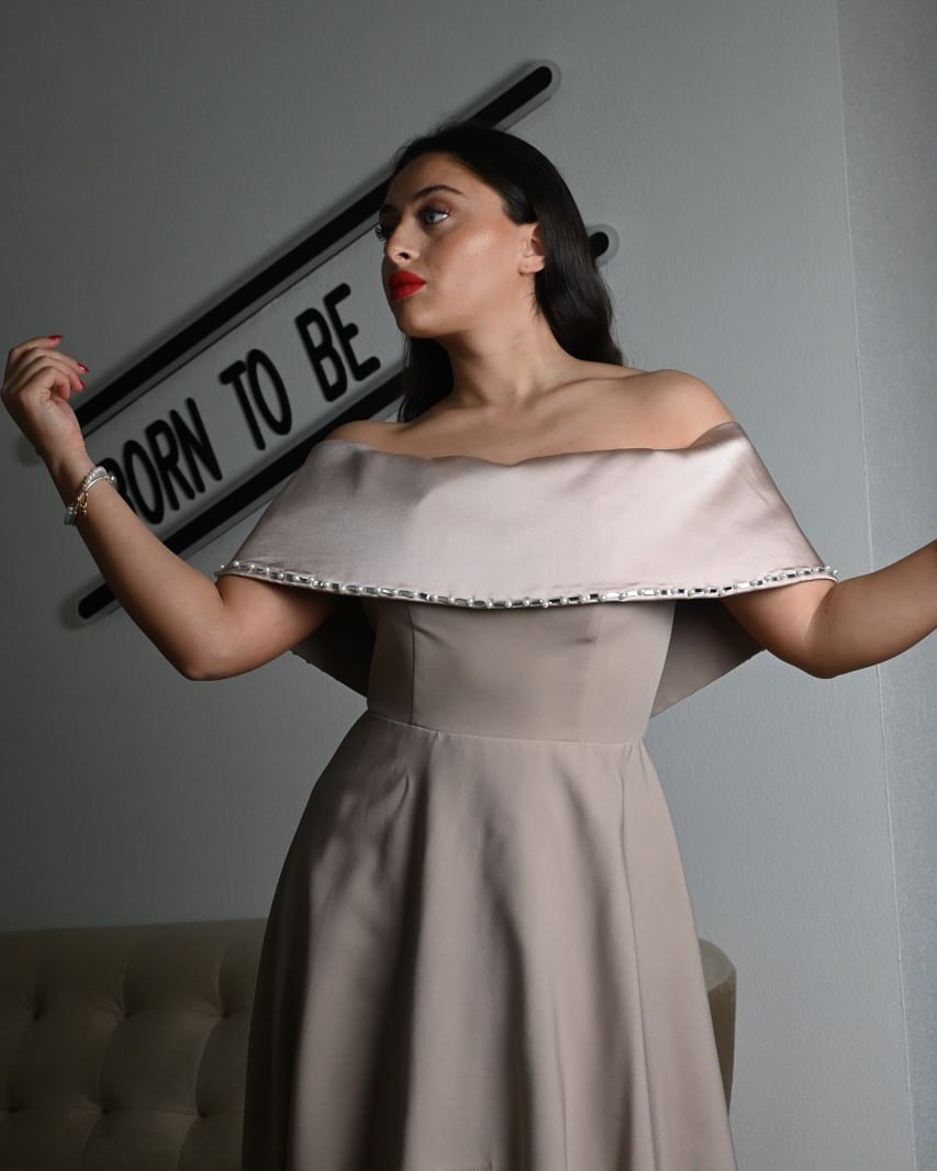 Beige dress with layered skirt