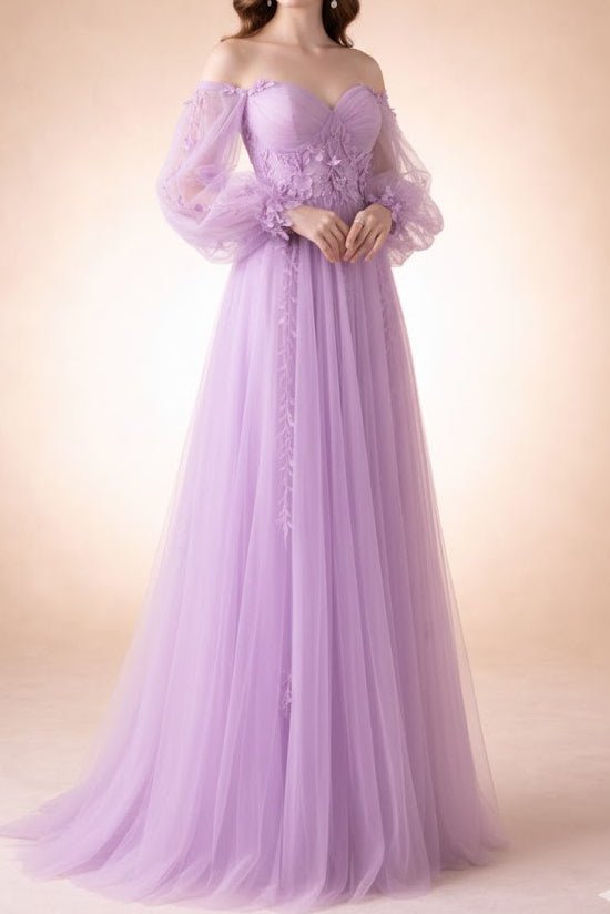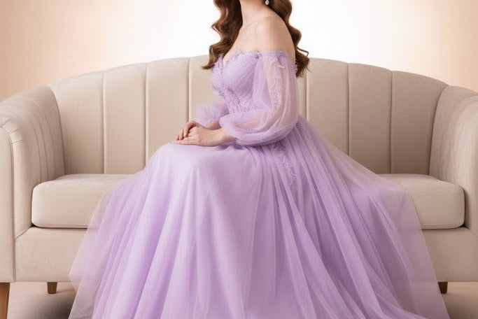 Lavender Floral Dress with Long Sleeves