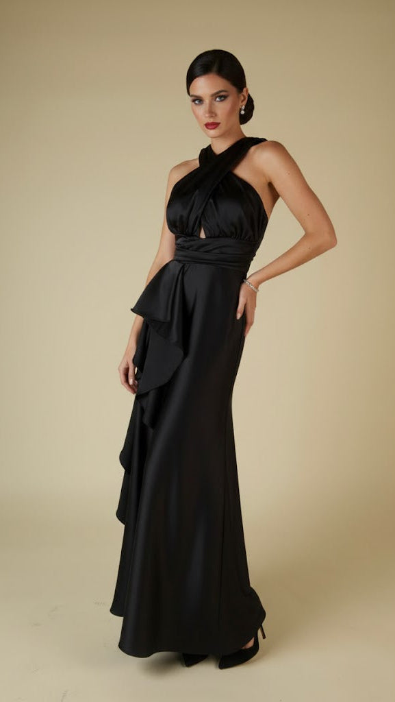 Black Wrap-Style Evening Dress