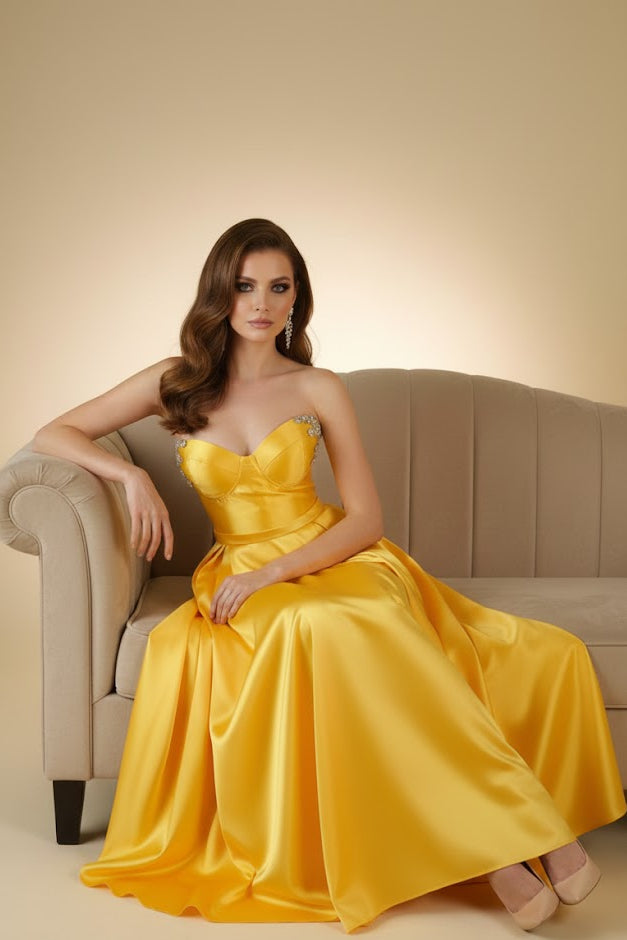Bright Yellow Satin Bustier Gown
