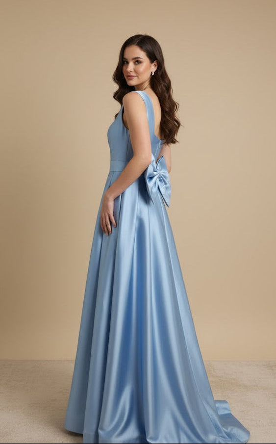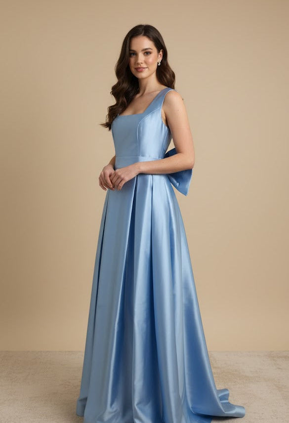 Elegant Sky Blue Satin Ballgown